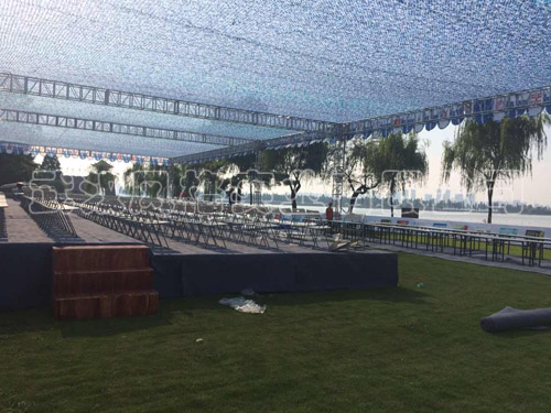东湖磨山 国际名校赛艇比赛铝合金桁架顶棚,水上舞台LED屏,帐篷A字板搭建完工实景照片